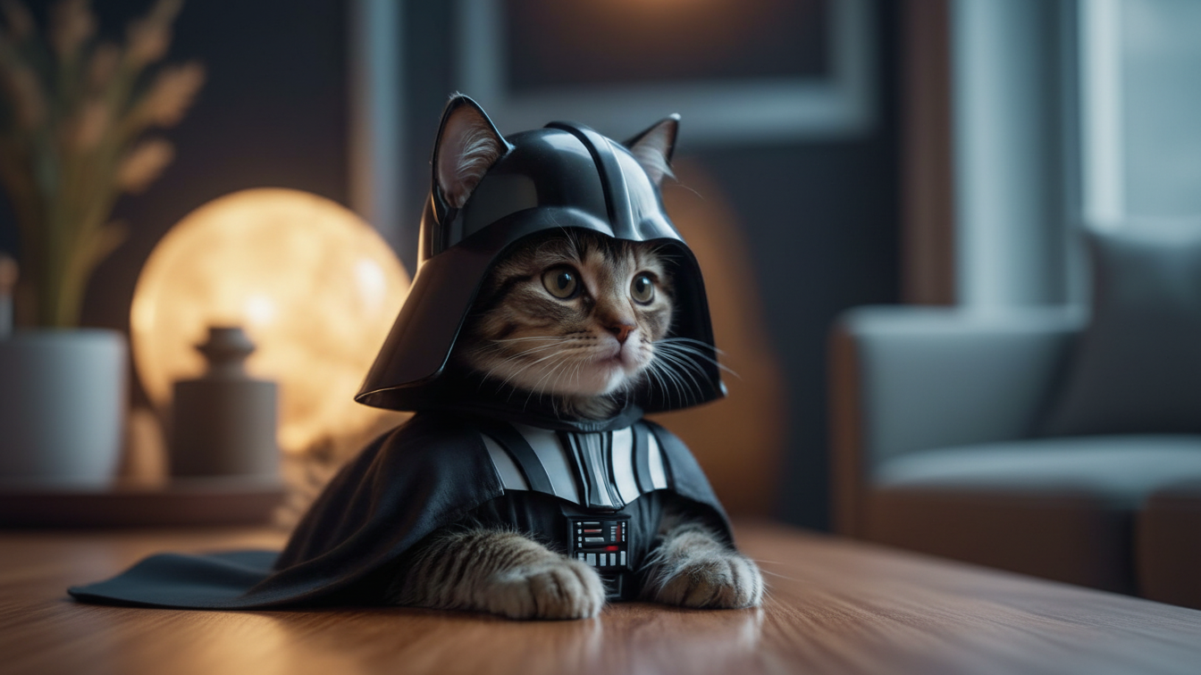 Otro de nuestros casos exitosos con inteligencia artificial fue la creación de una imagen de un gato vestido como el icónico Darth Vader.